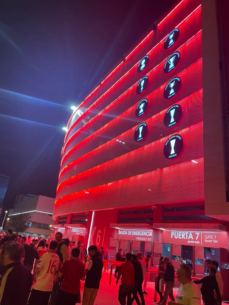 As an aperitif we took an uber directly from the fight to Ramon Sanchez-Pizjuan Stadium to watch Europa League LEGENDS Sevilla put a beatdown on the squalor 11 from Gibraltar. A few (World Cup champion) Argies in the squad satiated Theo and Dre set a stadium record for glizzies (no condiments). Akshay would never dare touch that sweet sweet horse meat.